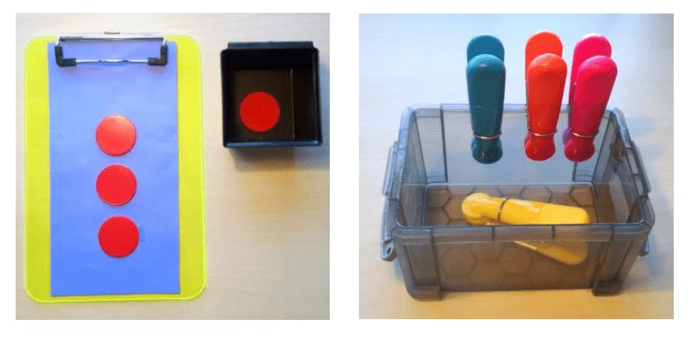 Choose a system for self-monitoring based on your student’s strengths and preferences. Concrete learners may do best with using objects. In the example above, if the student leaves their seat, they may move their token on the chart, deposit a token into a cup, or move a clothespin from one card to another. Others may prefer to check boxes for each behavior or circle an icon. Token boards are effective for many who are motivated by receiving a mini-reward like a star or sticker. Students who enjoy technology can keep track of behaviors using a variety of apps on a phone, tablet, or laptop, when available.