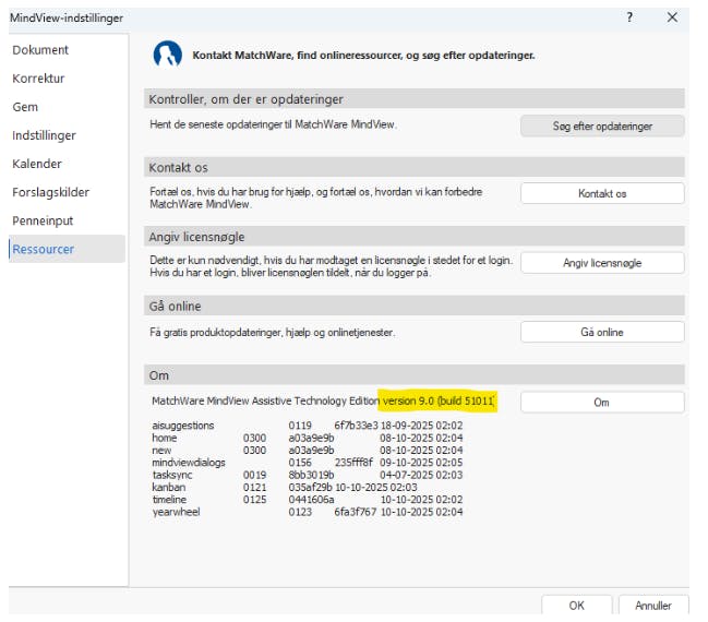 Step 2: Vælg Resources, og se under About MindView-sektionen.