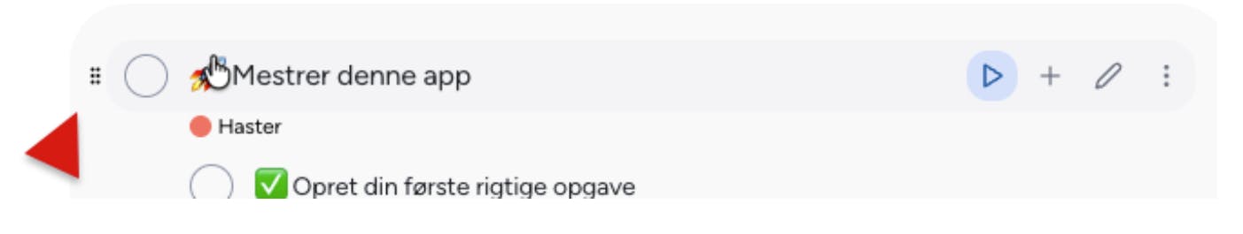 Når du holder musen over en Opgave, vil du se et lille trækhåndtag dukke op. Du kan derefter trække