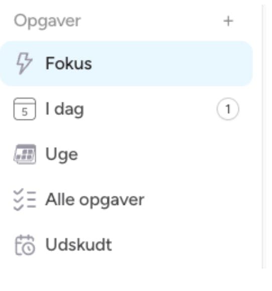 Vælg én Opgave, du vil fokusere på, ved at holde musen over den og klikke på Fokus, eller klik på Fokus i menuen til venstre og vælg en Opgave.