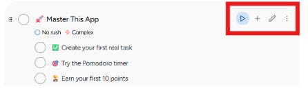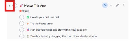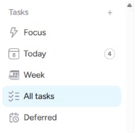 - Klikk på Focus for å velge én enkelt oppgave du jobber med akkurat nå.