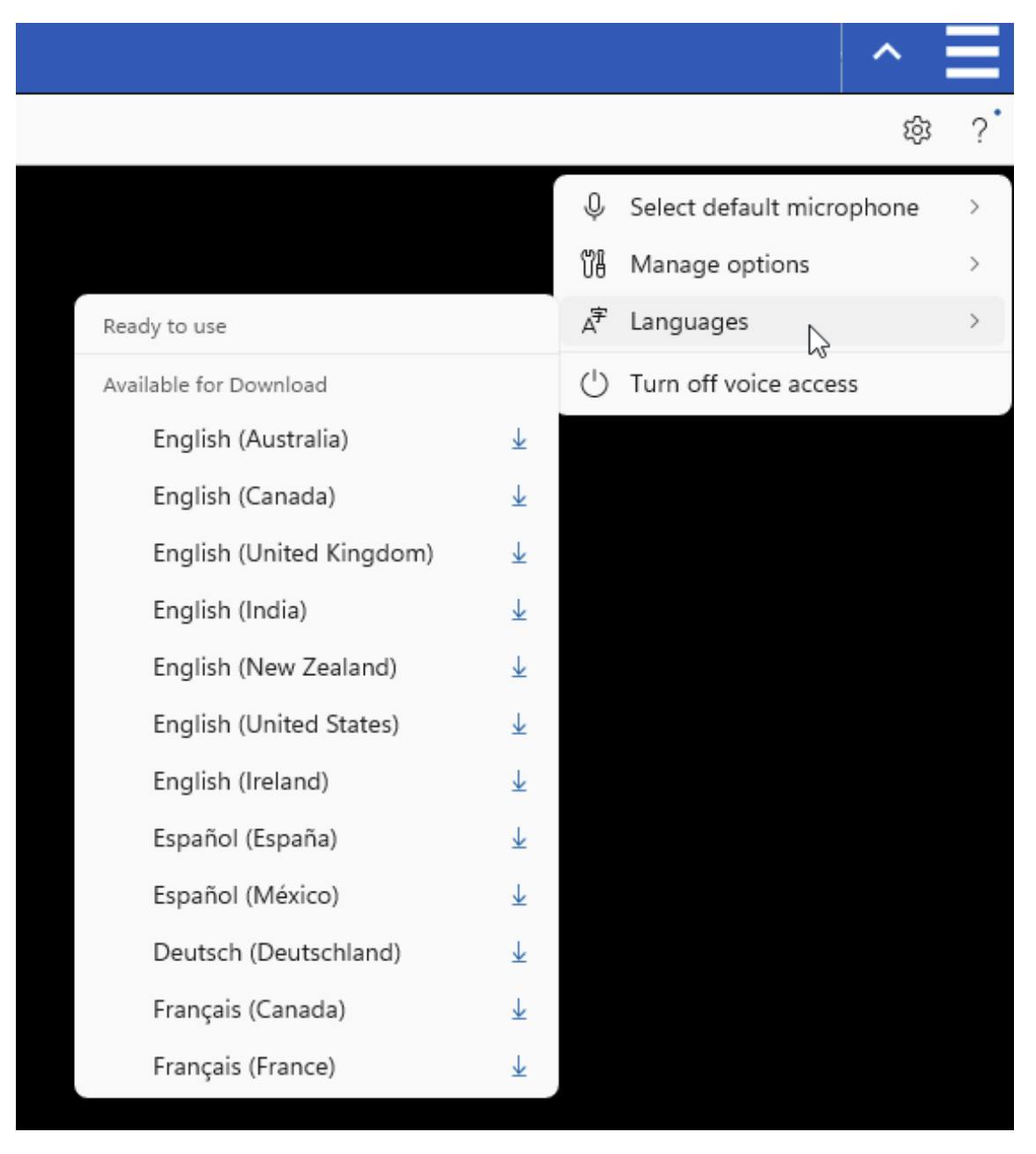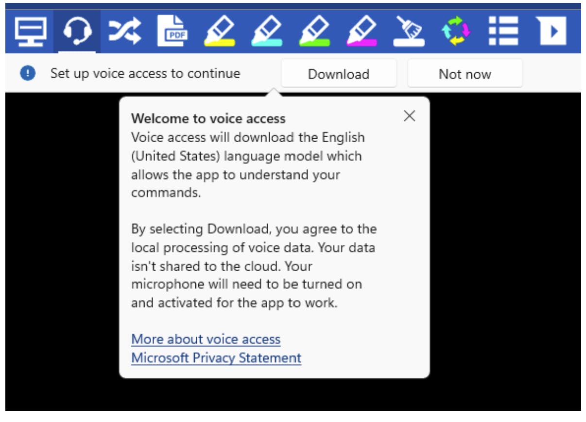 ⚠ Offline fungerer, men første gang Voice Access brukes, trenger man en internettforbindelse for å laste ned språkfilen.