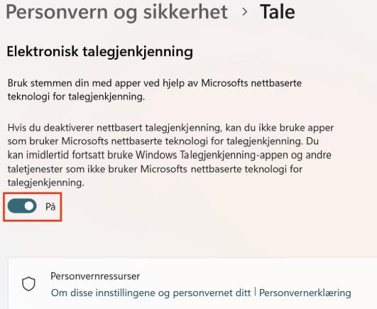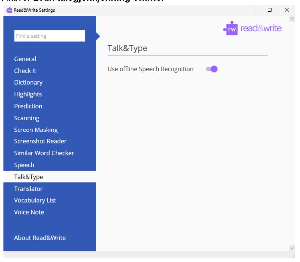 Hvis datamaskinen ikke har internettilgang, finnes det et offline-alternativ. Dette bruker den innebygde talegjenkjenningen i Windows.