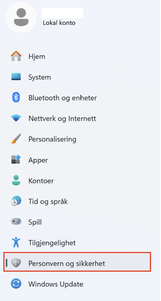 - Åpne Windows Innstillinger (Start → skriv Innstillinger).
