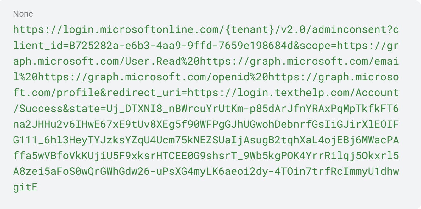 En administrator må logge inn på Office 365 og deretter åpne lenken nedenfor, der {tenant} erstattes med organisasjonens primære domene eller Tenant ID i Azure AD.