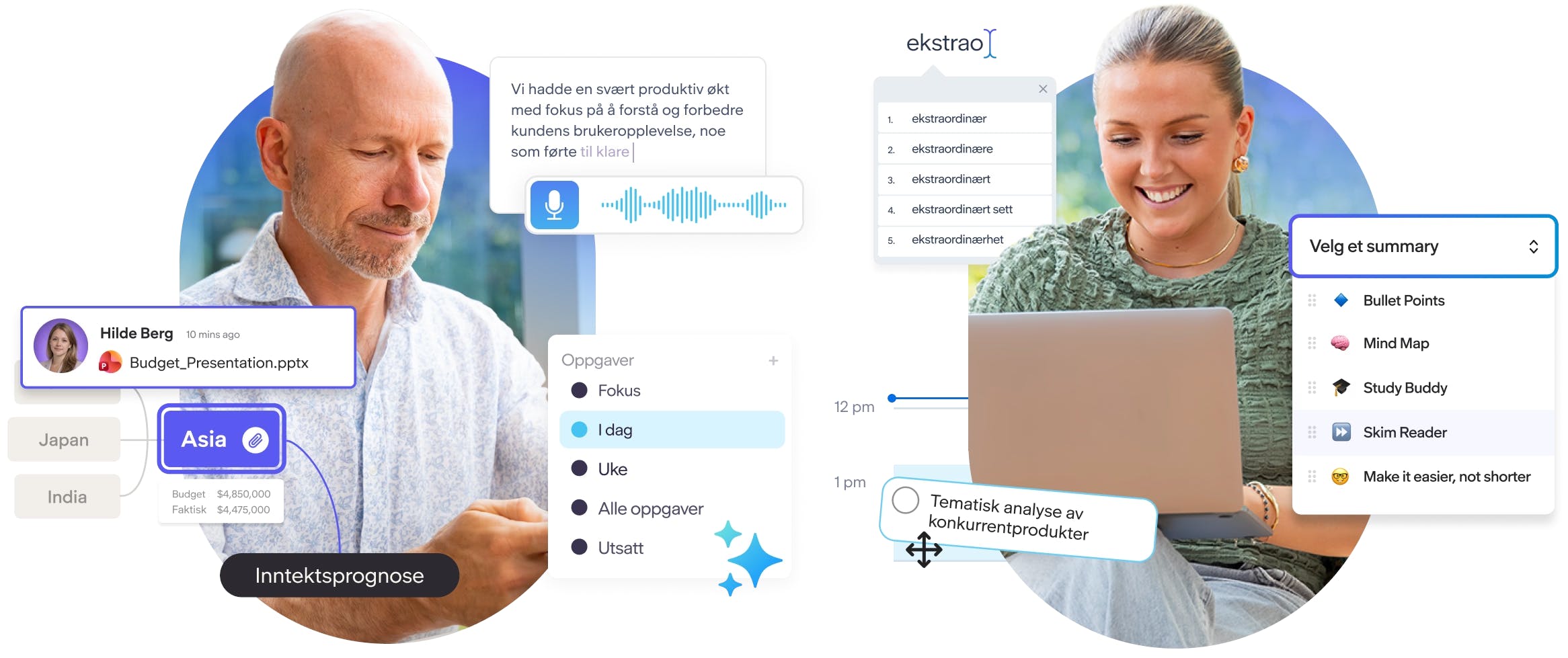 Ja. Everway for Work bruker KI for å gjøre arbeidet mer forståelig og lettere å konsentrere seg om. Funksjoner som tekstforenkling og skreddersydde sammendrag gjør komplekse dokumenter lettere å forstå, mens naturtro KI-stemmer gir en god tekst-til-tale-opplevelse og tar hensyn til ulike lese- og skrivebehov.