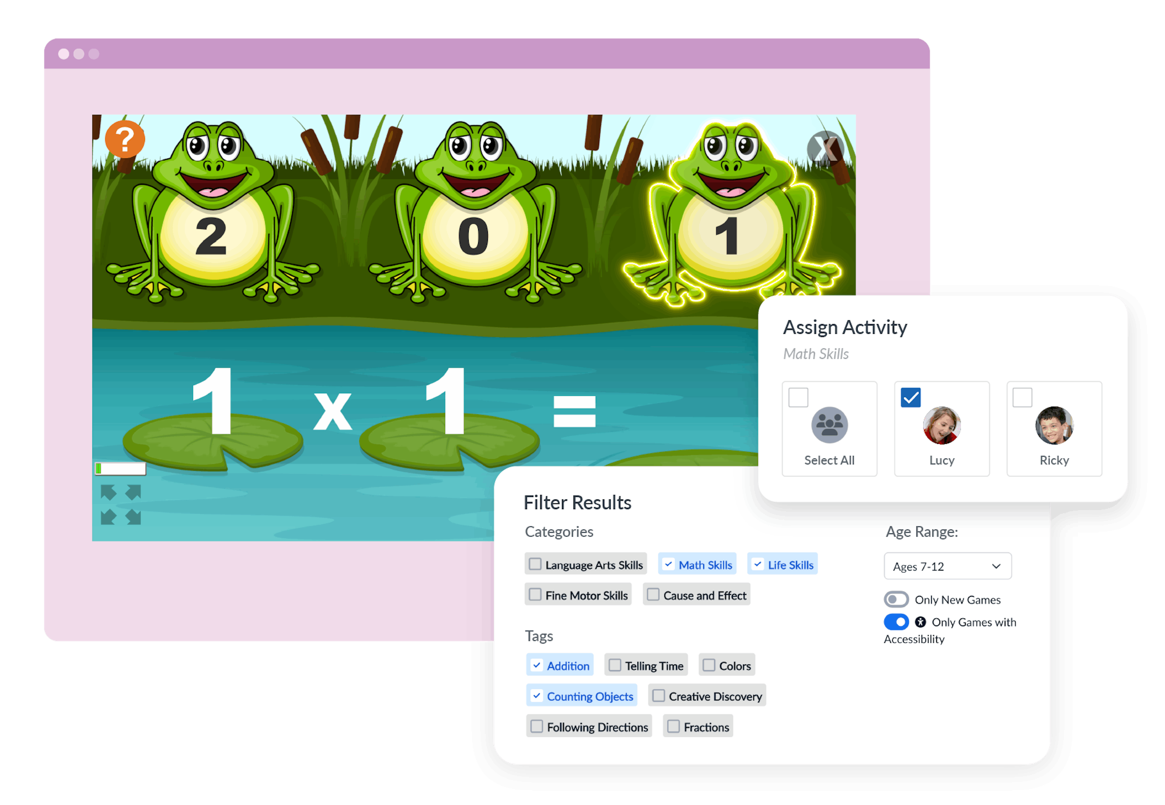 Encourage unique learners to tackle new challenges through engaging and motivating games. Build life-long skills that will help them in real-world situations. As they practice independent learning, students gain confidence and take pride in their progress.