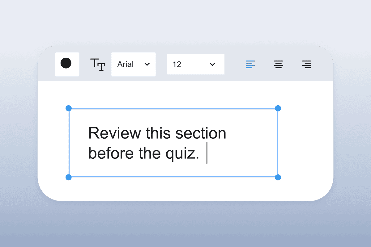 The Text tool lets you type text on top of a PDF. Ideal for adding study notes or feedback.