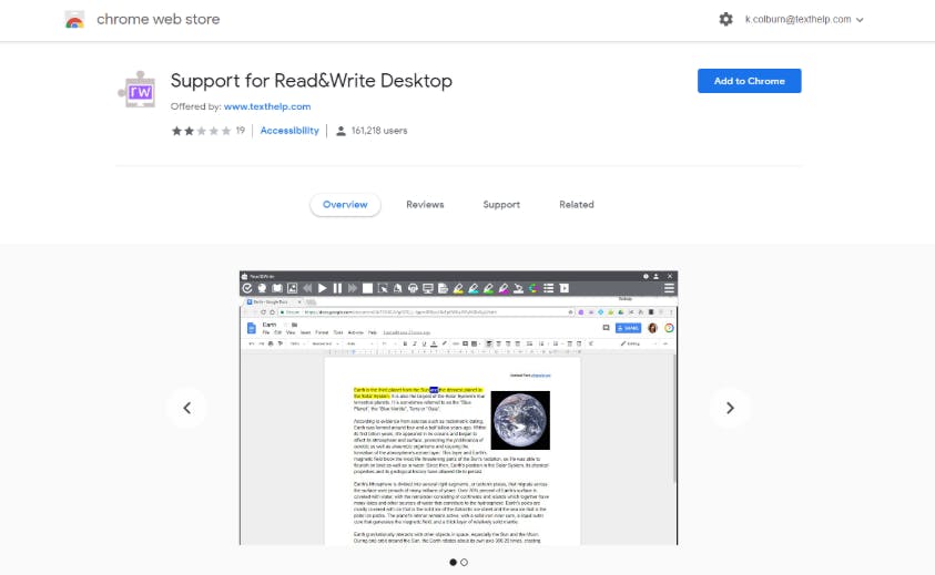 För att använda Read&Write för Windows i webbläsaren Chrome behöver du installera tillägget Support for Read&Write Desktop.