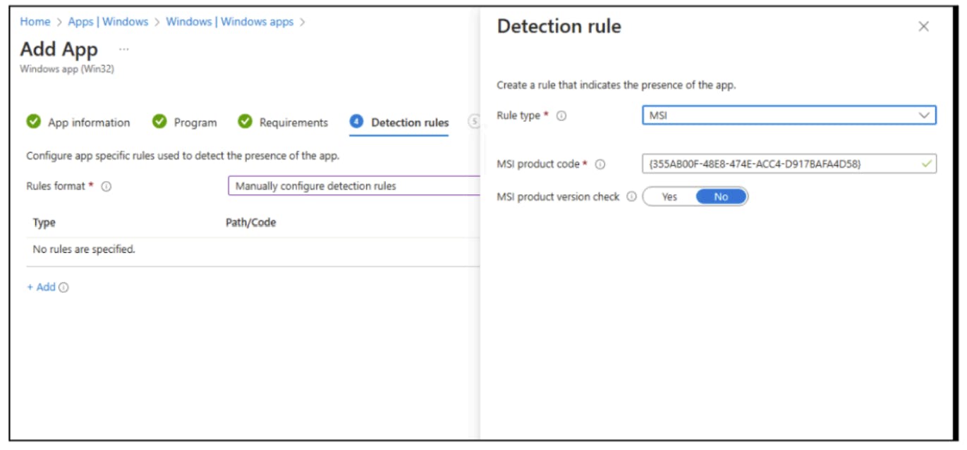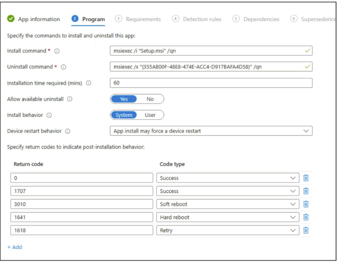 Dessa inställningar fylls i automatiskt eftersom vi använder en MSI-fil.