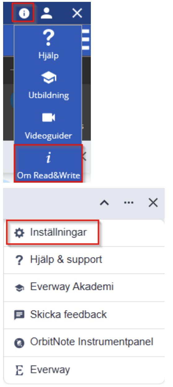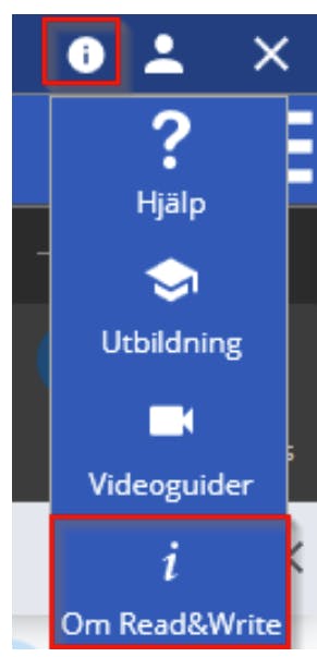 Klicka på Information-knappen i Read&Write-verktygsfältet och gå till About Read&Write.