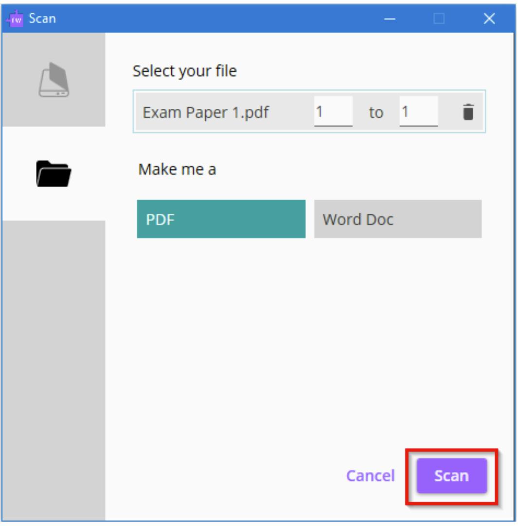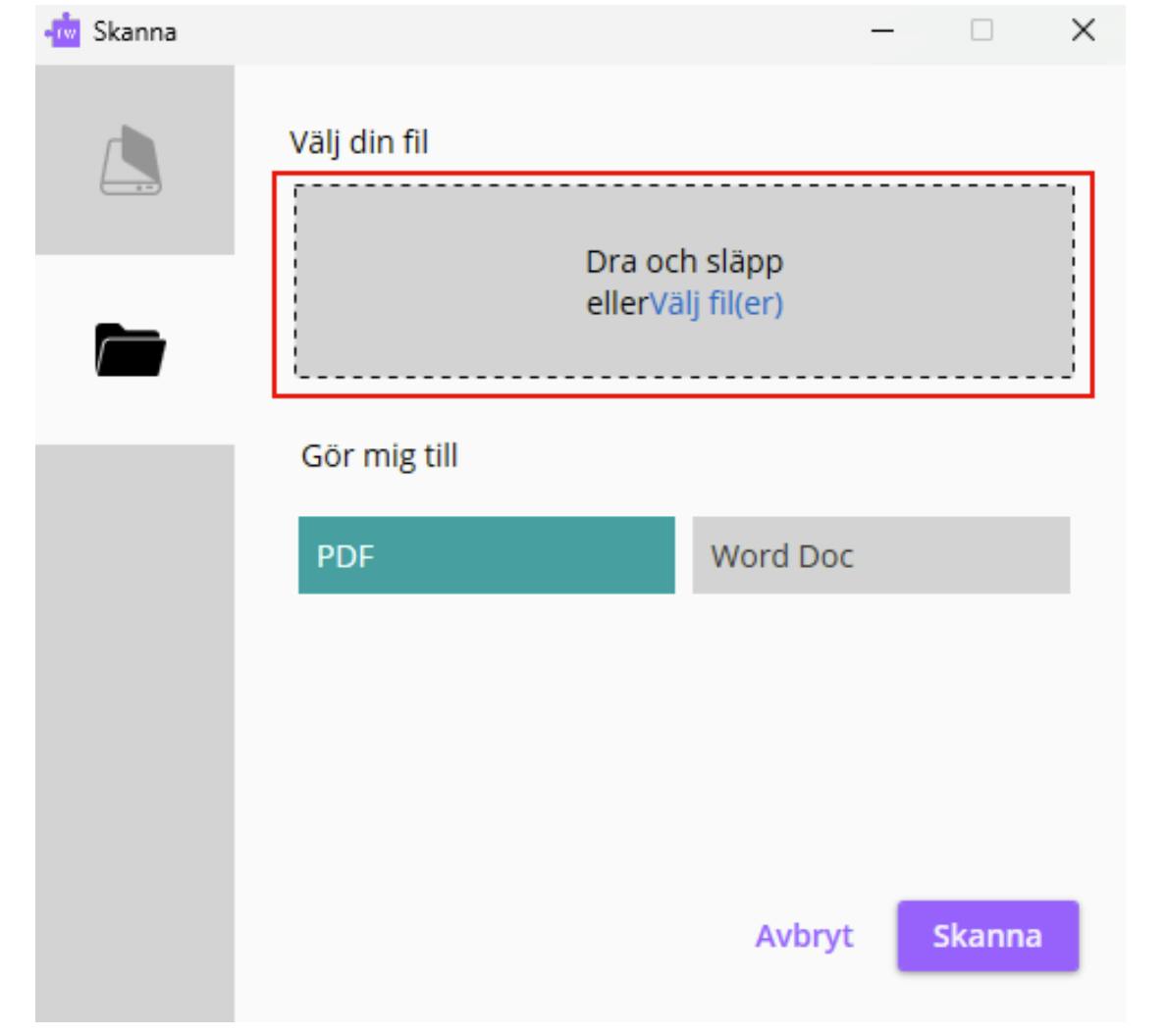 3. Dra och släpp filen, eller bläddra för att välja den fil du vill skanna, och välj vilken typ av fil du vill skapa.