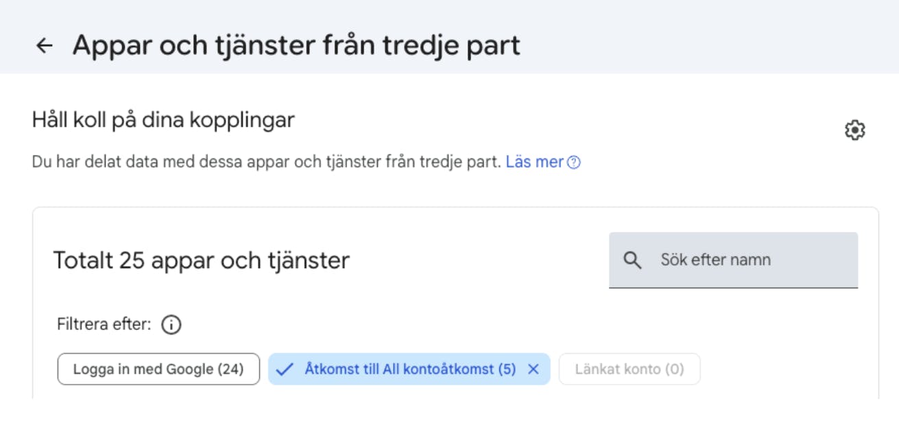 Här ser du vilka tillägg som har fått åtkomst till ditt Chrome- och Google Drive-konto genom att söka här:
