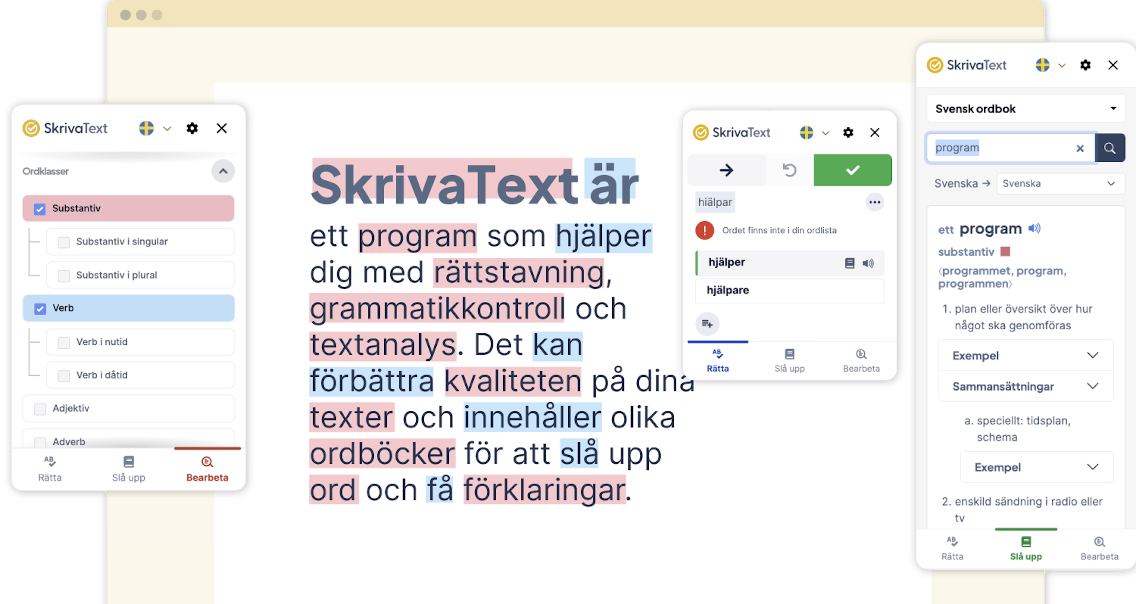 SkrivaText är designat för att hjälpa elever att självständigt identifiera och korrigera stavning och grammatik.